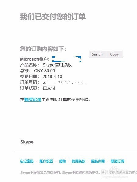 三、网页版Skype查看点卡余额
